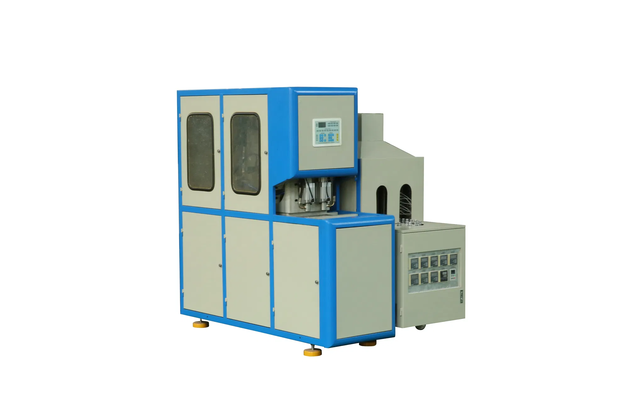 Blowing Machine can produce PET containers, including bottles for wine, drink, soybean, vinegar, and pesticide (less than 5 liters) according to the different bottle shapes and diameters. It has automobile system with high efficiency. The distant infrared ray heat pipe are used in the machine, It ha......