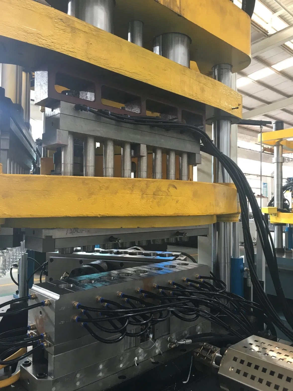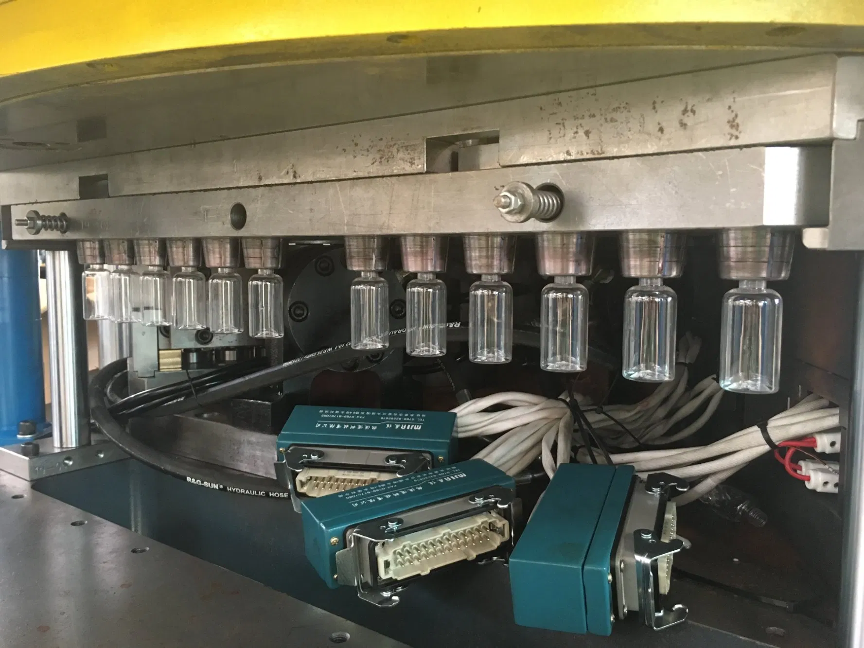 Hydraulic mold clamping, core insert, stretch blow and bottom molding are standard configuration;