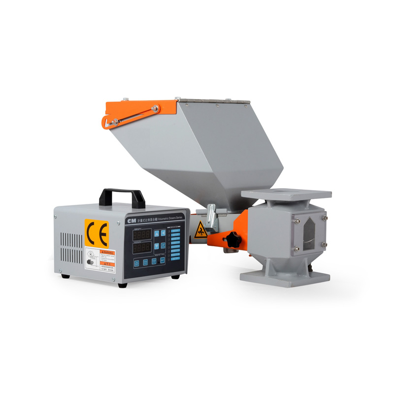 CM series volumetric dosing machine is equipment used in injection molding, extrusion molding and blow molding processing to automatically mix 1 main material and 1 or 2 color masterbatches or additives in proportion.