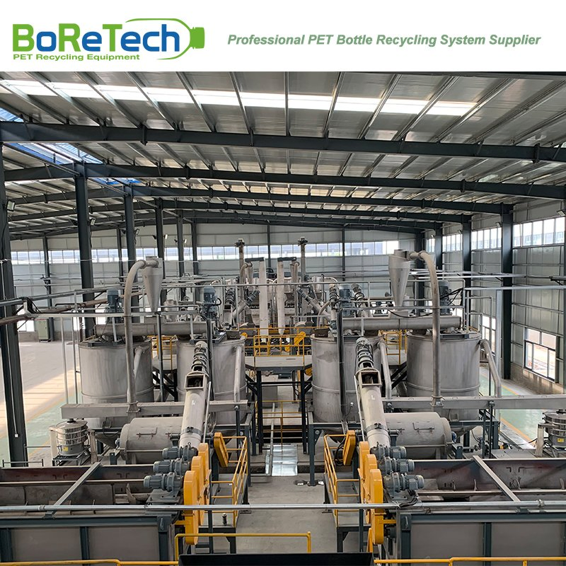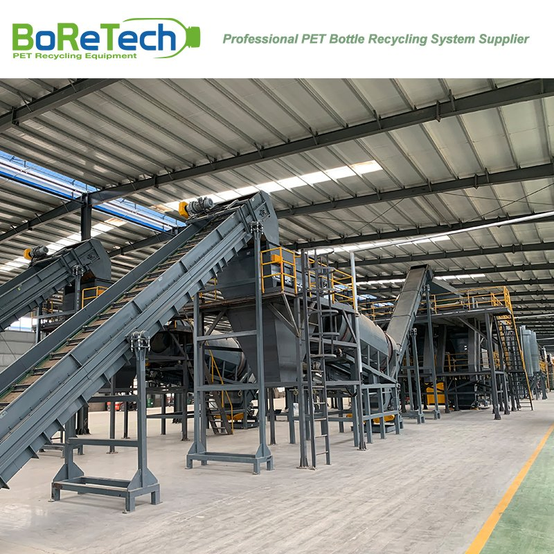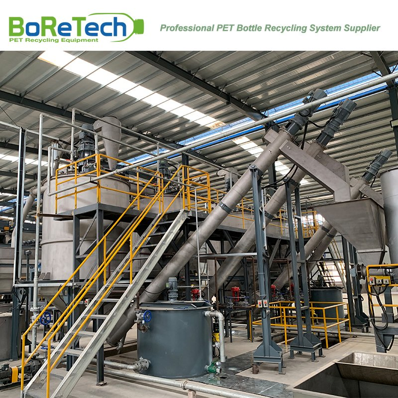 3000KG/H Used PET Hot Washing Production LinePET bottle recycling system is used to recycle from PET bottles bales to PET flakes, which with big capacity from 500 kg/h to 9000 kg/h.This process of washing and crushing is consist of different function units. The final product rPET flakes has a stable quality and various grade applications, especially for PSF ,POY manufacturer with big capacity. Recent year, BoReTech develop new technology, rPET can be achieved Bottle-to Bottle grade application with FDA approval.Advantage of PET Bottle Washing Line by BoReTech - Food grade PET bottle washing line supplier in Asia;