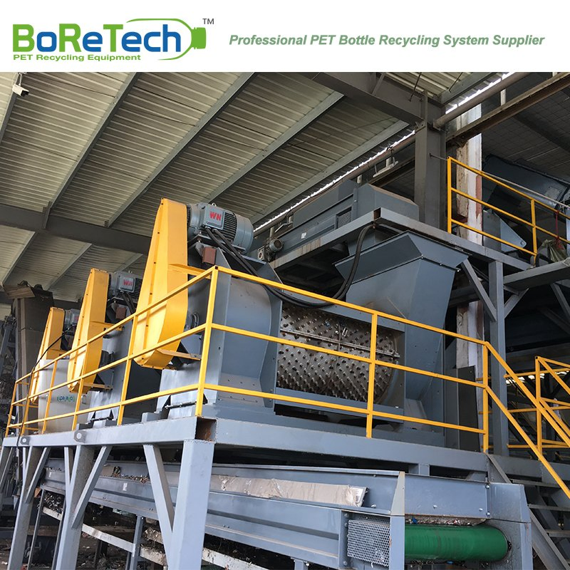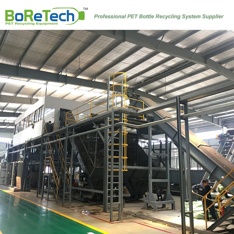 TL5000 Waste Plastic Recycling Production PlantPET bottle recycling system is used to recycle from PET bottles bales to PET flakes, which with big capacity from 500 kg/h to 9000 kg/h.This process of washing and crushing is consist of different function units. The final product rPET flakes has a stable quality and various grade applications, especially for PSF ,POY manufacturer with big capacity. Recent year, BoReTech develop new technology, rPET can be achieved Bottle-to Bottle grade application with FDA approval.Advantage of PET Bottle Washing Line by BoReTech - Food grade PET bottle washing line supplier in Asia;